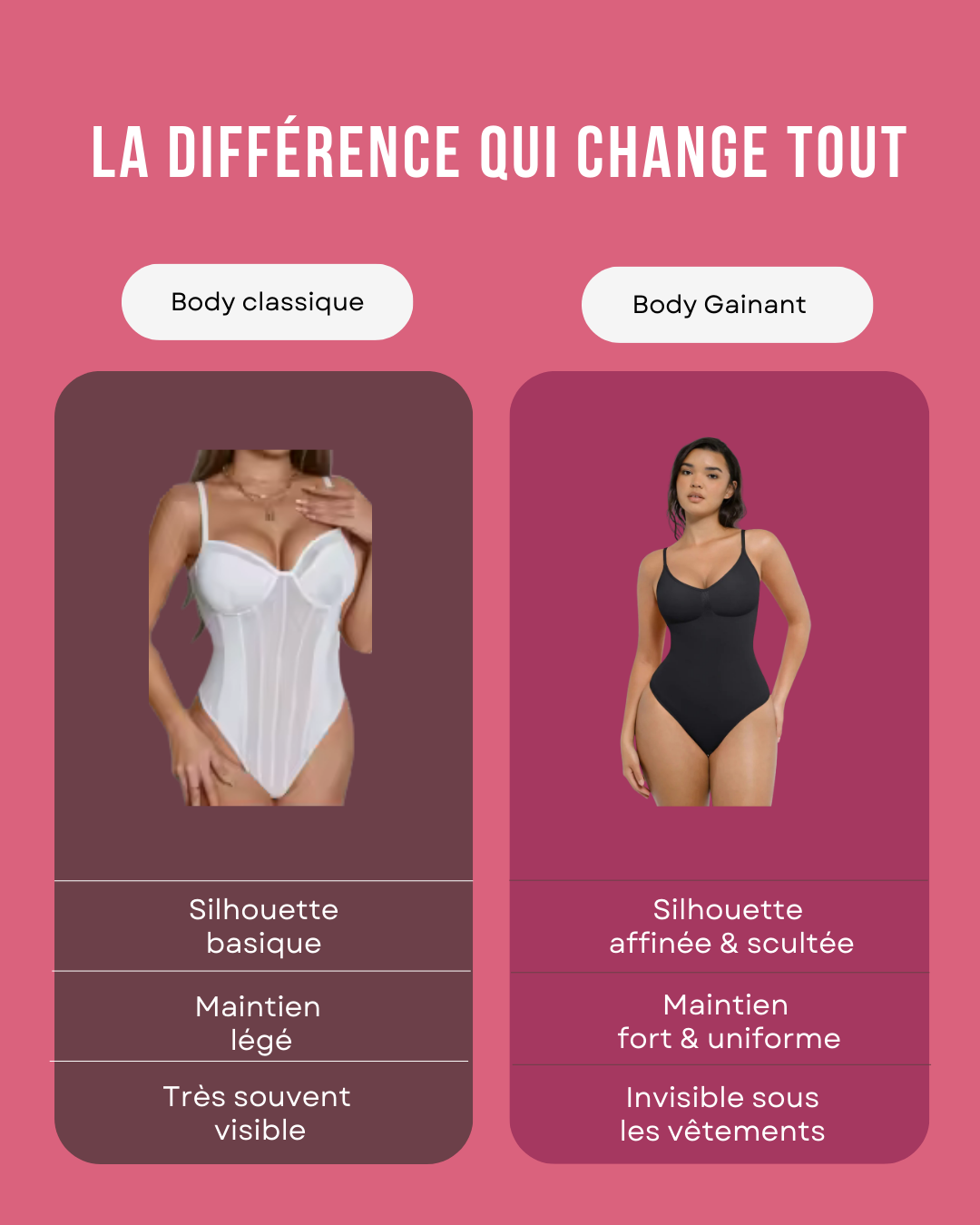 Notre body gainant a été pensé pour permet de porter des vêtements moulants ou élégants sans se soucier des marques.
